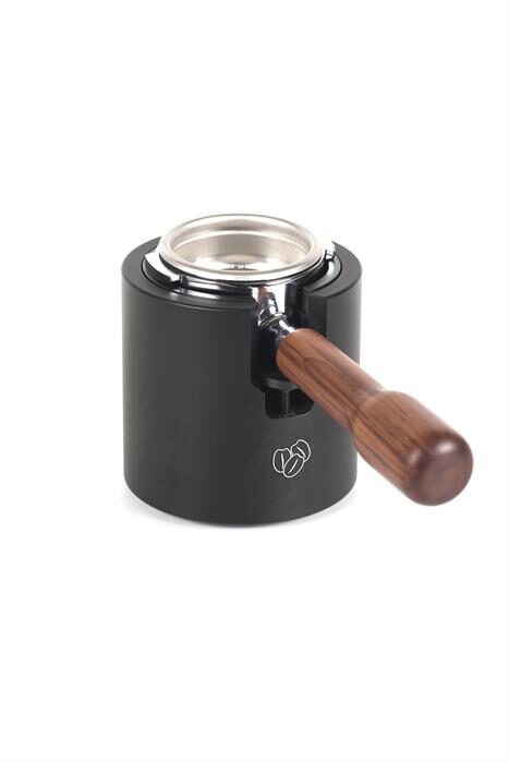 Kompakte, runde Tamperstation damit das Tampen (Anpressen des Kaffeepulvers) leichter von der Hand geht. Gefertigt aus Aluminium, schwarz matt lackiert, mit geschlossenem Boden damit kein Pulver verstreut wird. Auf der Innenseite der Station ist eine Kunststoffeinlage eingelegt um ein geräuschloses Auflegen des Siebträgers zu gewährleisten. Diese Einlage vermeidet ebenso dass Metall auf Metall trifft.