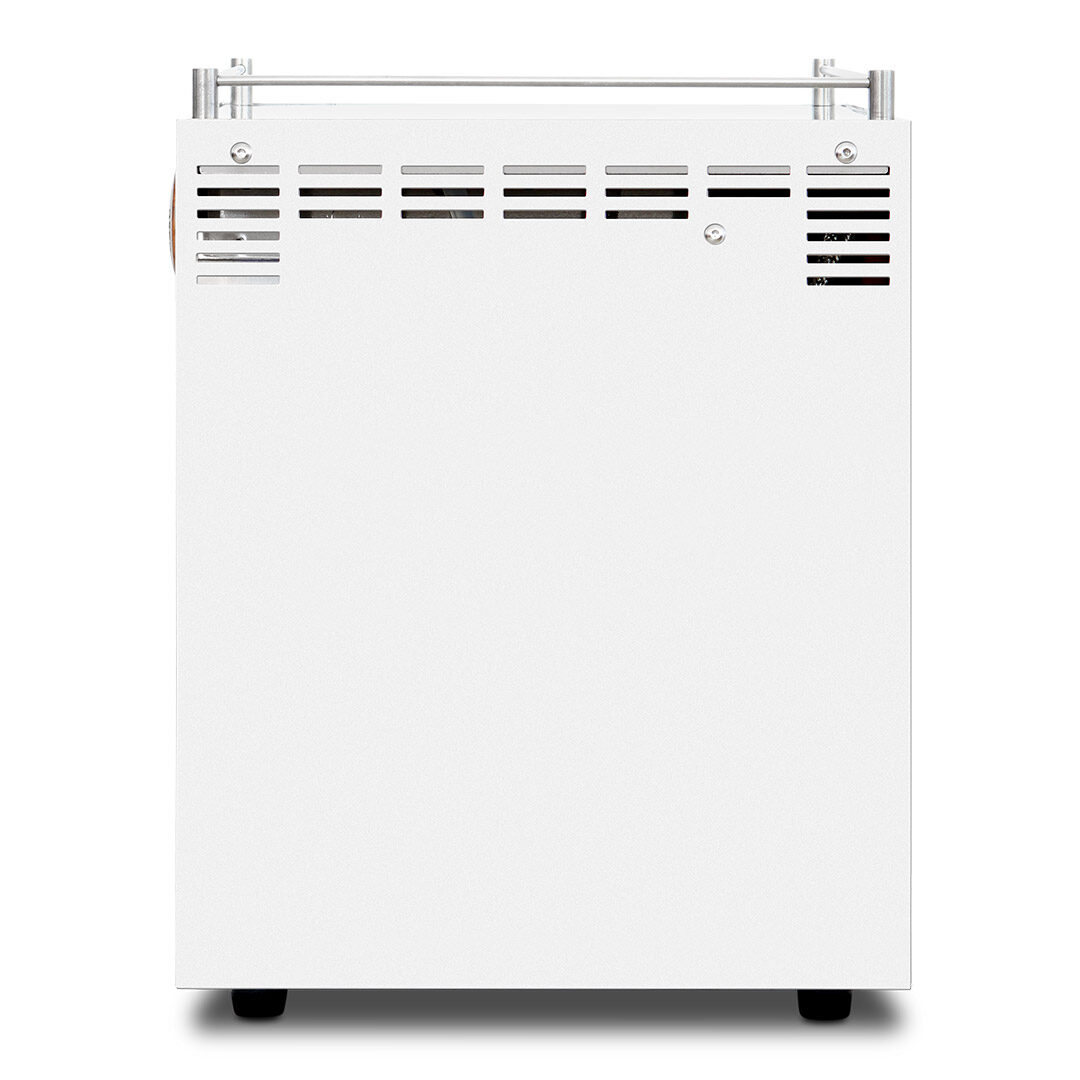 1-Kreislauf Espressomaschine mit neuem Hochleistungs-Thermoblock aus Edelstahl und Aluminium, 230 V/ 1052 W, integrierter Heizschleife. Multifunktionale PID Steuerung mit gradgenauer Temperaturvorwahl, Portionierelektronik, Shot-Clock, zeitlich regulierbare elektronischer Pre-Infusion, Standby-Funktion. Gehäuse aus Hochglanz Inox, matt schwarz oder weiß lackiertem Metall, 2 l Tank, Manometer. 5 Edelstahlsiebe (58mm) für den Betrieb mit gemahlenem Kaffee und Pads, sowie Alu-Tamper im Lieferumfang enthalten. Tassenheizung, Profi-Dampflanze aus Edelstahl, Barista Lights. Einstellbarer Brühdruck, Präzisionsmanometer. Siebträgergriff und Dampfrad aus Hartholz.
